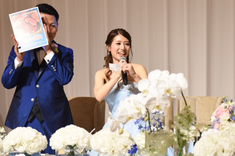 挙式で「1日1回はギャグを言って笑いの絶えない家庭を築きます」と誓い合ったおふたり。