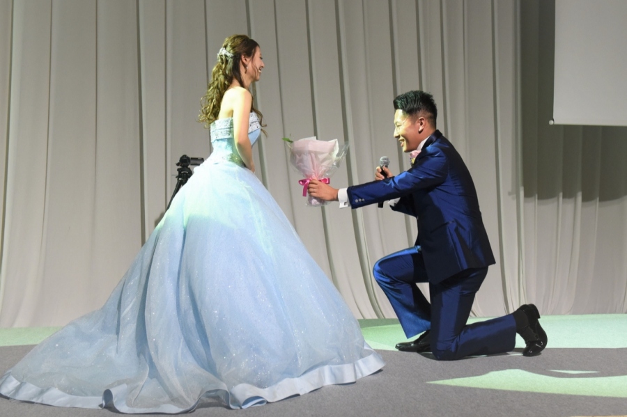 ご友人参加型の余興として、ご新郎がご新婦にプロポーズ!