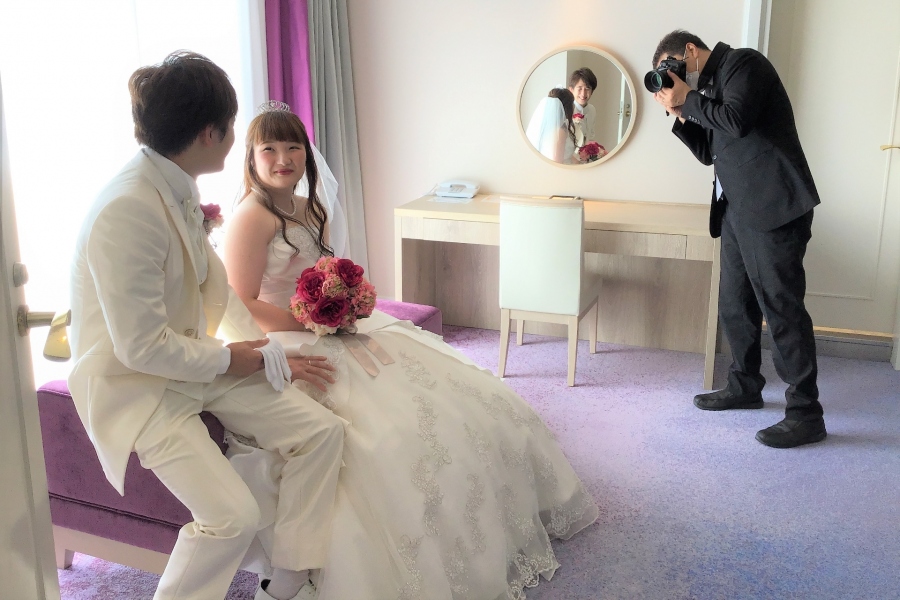 晴れ姿のおふたりが、もう一度思い出のスイートルームを訪れました。