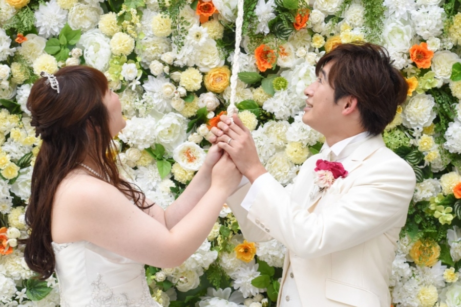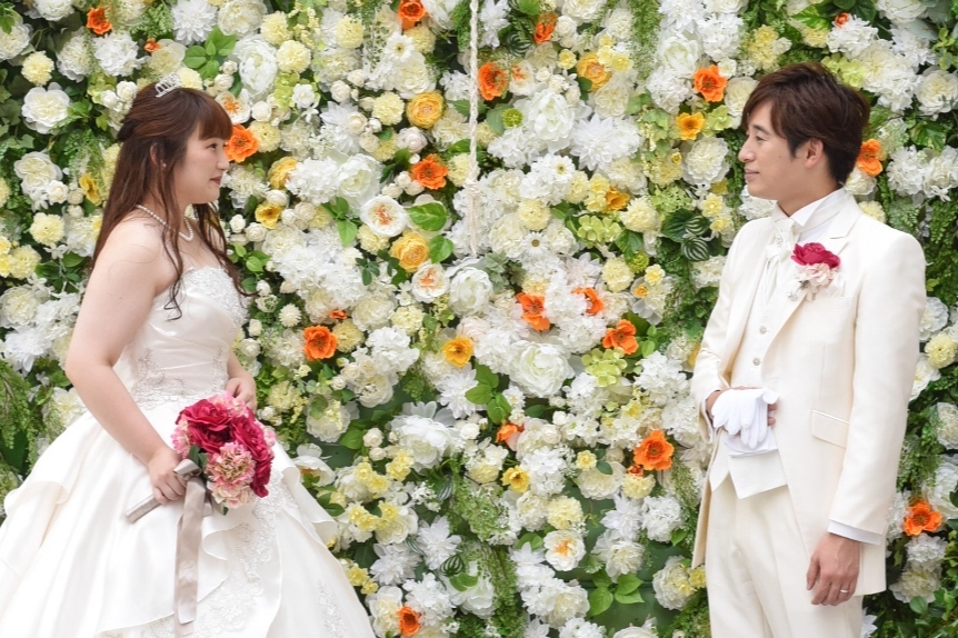 特に、開業1周年記念でこの夏に登場したフラワーウォールは、打ち合わせの時からおふたりがお好みだった場所。