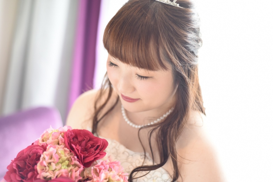 プロポーズから時を経て迎えたウエディングの当日、輝くばかりの明るいお顔を拝見して、私も幸せな気持ちをいただきました。