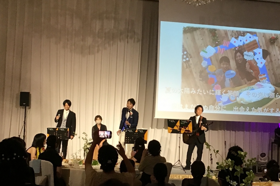 元の歌詞を少し変え、ユーモアも交えながらご新郎の気持ちを込めた歌に、会場は笑いと涙につつまれました。