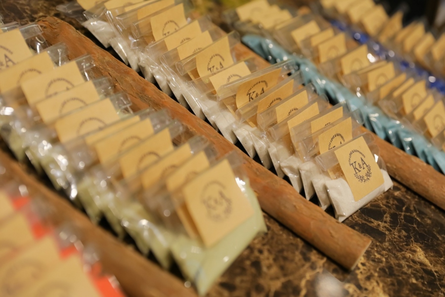 受付にも会場にも色とりどりの手作り品が並び、ゲストも楽しく待ち合いの時間を過ごすことができました。