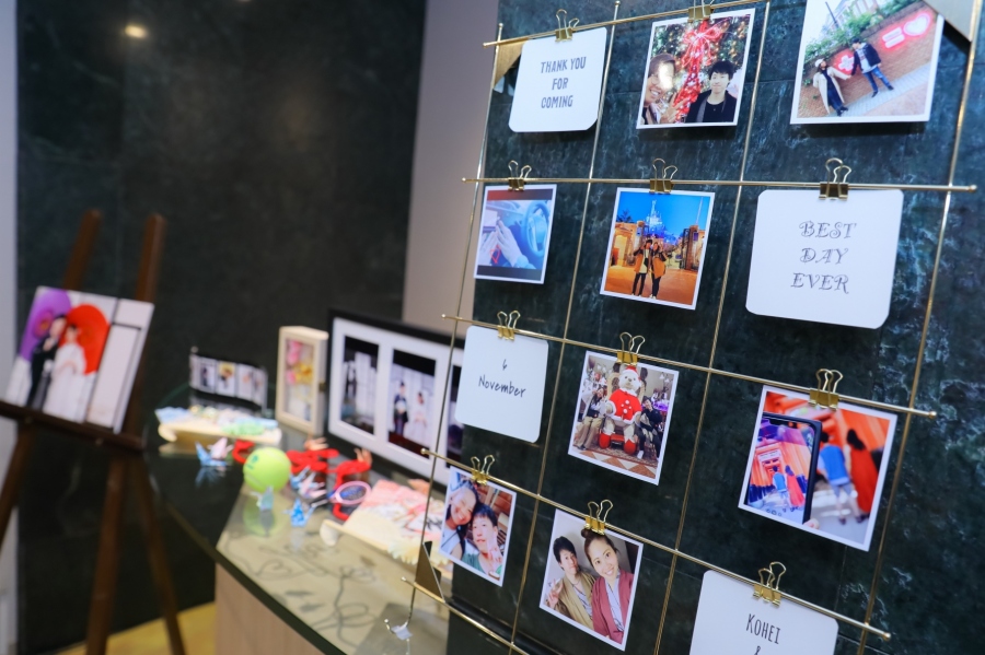 また、挙式や披露宴が始まるまでの待ち時間に撮影を楽しんでもらえる「フォトブース」を設置するおふたりもいらっしゃいます。