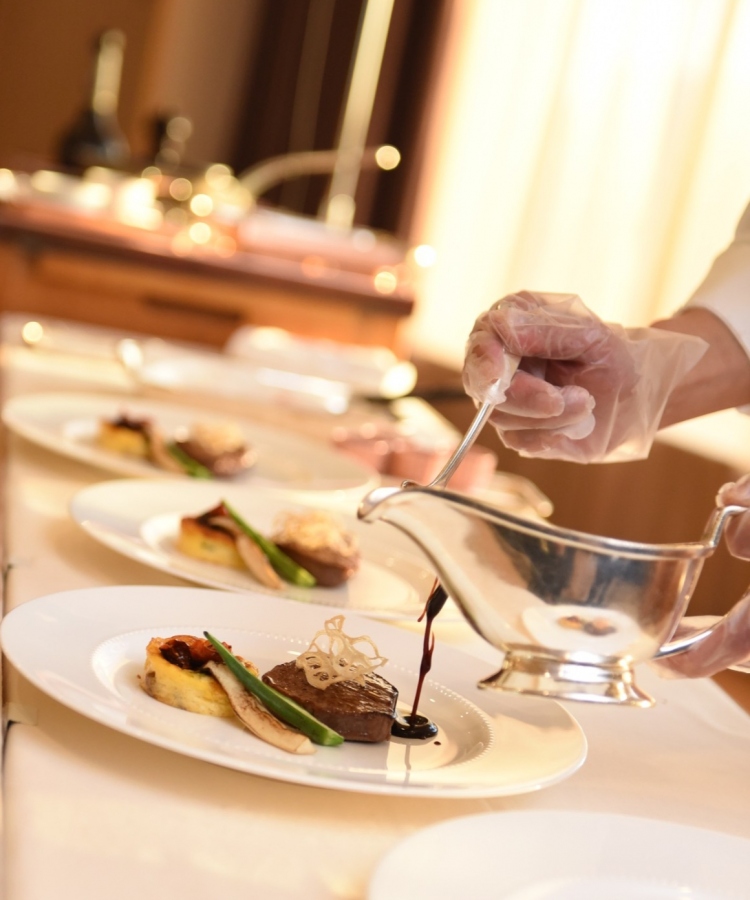 とろけるような牛フィレ肉、焼き上げたらすぐにゲストテーブルへお運びします。