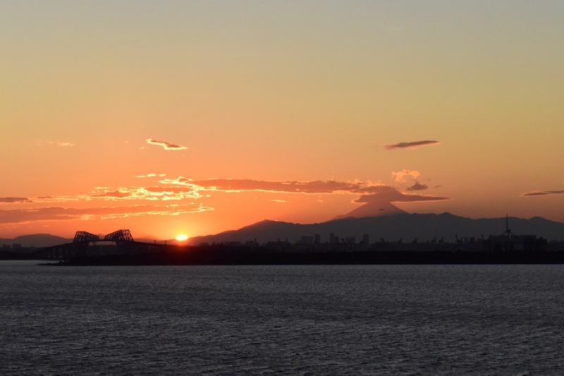 夕日の沈む中、薄っすらと顔を覗かせる富士山。景色を眺めながらの披露宴はおふたりにとっても、ゲストにとっても忘れられない思い出に…